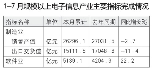 图二: 1~7月规模以上电子信息制造业主要指标完成情况
