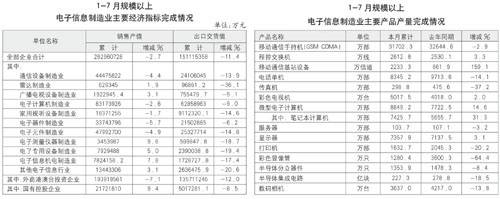 图三: 1~7月规模以上电子信息制造业主要经济指标和主要产品产量完成情况