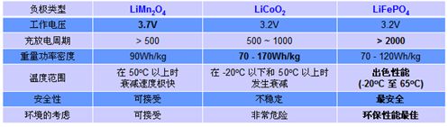 表 不同负极材料的比较 资料来源:凌力尔特