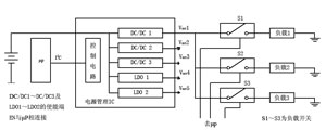 图6就是一种负载管理的结构示意图。在图中,电源管理IC有5路输出(3路DC/DC转换器、2路LDO)。DC/DC1的输出供3个并联的负载1~负载3。为了控制负载1~3的通电或断电,在DC/DC1与3个负载之间加接了3个负载开关(负载开关1~3),其控制端接微处理器I/O口,由微处理器控制其通、断来实现负载管理。[page]