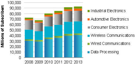 - 全球半导体市场2010年也将增长13.7% 到2610亿美元