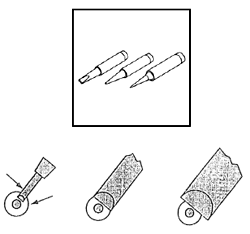 选择正确的烙铁头尺寸和形状是非常重要的,选择合适的烙铁头能使工作更有效率及增加烙铁头之耐用程度。选择错误的烙铁头会影响焊铁不能发挥最高效率,焊接质量也会因此而减低。(图9)