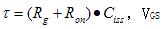 开通过程中,从t0 时刻起,栅源极间电容开始充电,栅电压开始上升,栅极电压为: