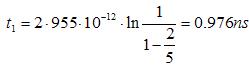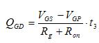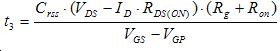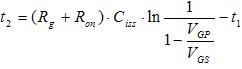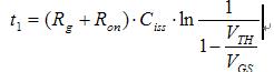 VGS电压从0增加到开启阈值电压VTH前,漏极没有电流流过,时间t1为: