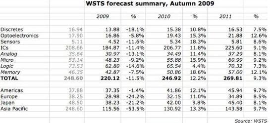全球半导体贸易统计机构(WSTS)对于2010年各类芯片的展望,有的达两位数,这是由于前几个月工业迅速回升。