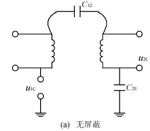 在图1(a)中,隔离变压器不加屏蔽层,C12是一次绕组和二次绕组之间的分布电容,在共模电压u1C的作用下,二次绕组所耦合的共模噪声电压为u2C,C2E是二次侧的对地电容,则从图可知二次侧的共模噪声电压u2C为: