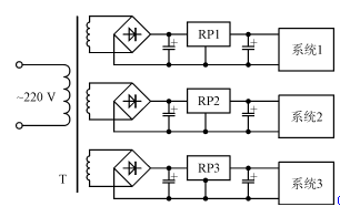 当控制装置和电子电气设备的内部子系统之间需要相互隔离时,它们各自的直流供电电源间也应该相互隔离,其隔离方式如下:第一种是在交流侧使用隔离变压器,如图2(a)所示;第二种是使用直流电压隔离器(即DC/DC变换器),如图2(b)所示。