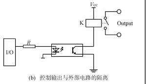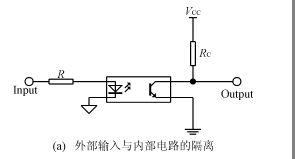 这种隔离方法是用光电耦合器把输入信号与内部电路隔离开来,或者是把内部输出信号与外部电路隔离开来,如图4(a)、(b)所示。