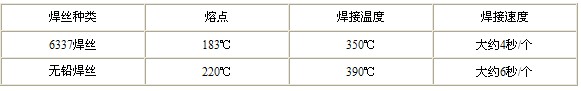 首先我们了解一下有铅和无铅焊接在焊丝种类、熔点、焊接温度、焊接速度之间的区别。