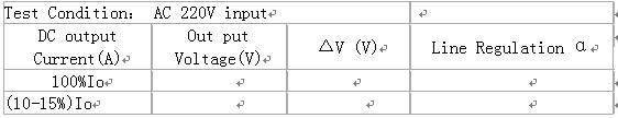 1、测试条件:交流输入电压220V,输出满载(对于多路输出,各路均满载)