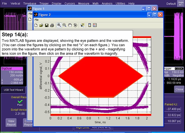 根据选择好的测试项目,QualiPHY随即展开一系列自动化测试过程:自动设置示波器工作参数包括采样率、存储深度、采集时间、纵轴刻度、触发电平等;自动定义测量参数;自动调用第三方软件如Matlab对波形运算,自动分析波形和测量结果,自动输出分析结果,整个测试过程完全是自动化的,无需任何人工干预。在测试过程中会同步显示测试状态和过程提示。