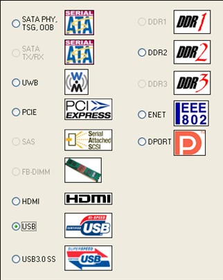 QualiPHY软件集成了多种串行协议,不仅支持USB2.0协议,而支持其他流行的串行协议诸如SATA、UWB、PCIE、SAS、FBDIMM、HDMI、DDR2、ENET等,如下图所示。不同的串行协议采用相同的用户界面和操作方法,工程师无需重复学习,举一反三即可快速掌握全部协议的一致性测试流程。