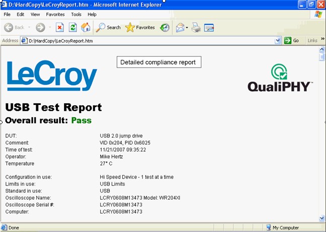 图7 QualiPHY软件自动生成USB2.0一致性测试报告