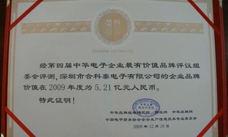 - 合科泰获得“中华电子企业最有价值品牌”奖