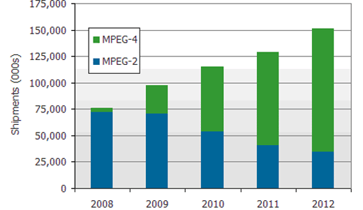 - 估计2010年附有MPEG-4 解码器电视出货量将超过MPEG-2