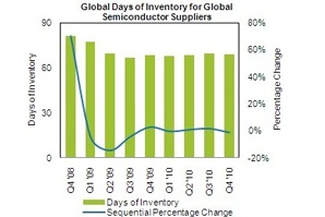 整个2010年的DOI预计稳定在接近70天的水平。半导体供应商打算在这一年中的四个季度都能保存库存需求的平衡。