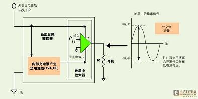 CirrusLogic公司和其它制造商通过集成充电泵来产生耳机放大器所需的负电源电压,从而解决了这个问题。这些充电泵效率比较高,并且仅需最少的外部元件。这种拓扑不但不需要耳机的去耦电容,而且可从1.8V系统获得能产生足够收听音量的功率。充电泵产生负1.8V电压,能有效地为3.6V放大器供电。