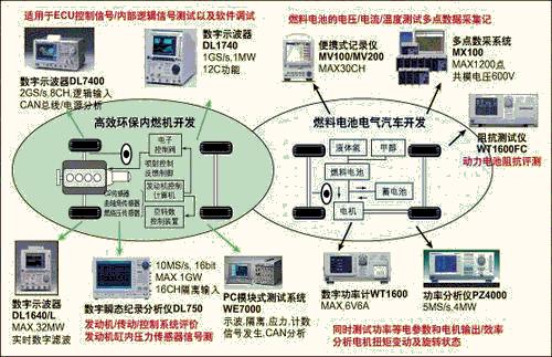 本文针对汽车研发过程中所涉及到的发动机分析、驱动分析、振动分析、环境影响、燃料电池效率分析、CAN总线分析等方面,介绍横河电机提供的各种测试解决方案(图1)。