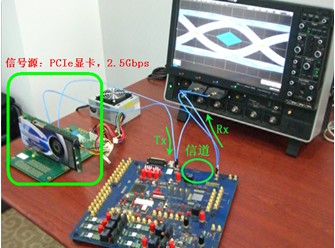 2. 使用眼图医生仿真背板系统:PCIe显卡发送出的信号通过SMA电缆连接到示波器,即直接测量发送端的波形,把背板(即24英寸传输线)的S参数文件调入眼图医生软件,仿真出该信号通过背板后的波形(即RX的波形)。