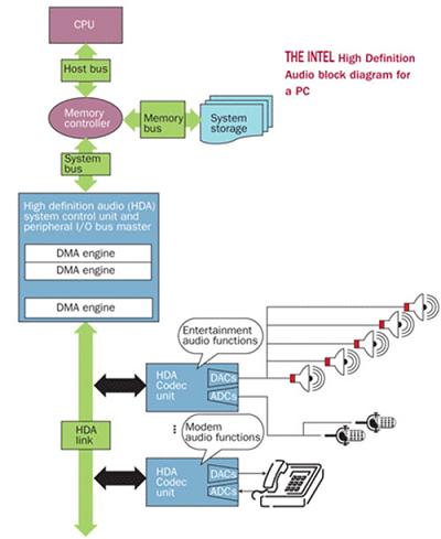 Intel公司在2004年就公布了HDA标准(见图1),用以满足最终用户不断提高的期望值。Intel的HDA继承了AC''97采用主板声音解决方案的传统,但又专为支持家庭娱乐而额外添加了高性能的音频功能。HDA规范支持八通道的192kHz/32bit音频输出。