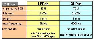 图 3: 尽管LFPak和 QLPak 的封装区域与SO8同为 6 ′ 5 mm,但这两种封装之间却存在明显的差异,详见下表2。