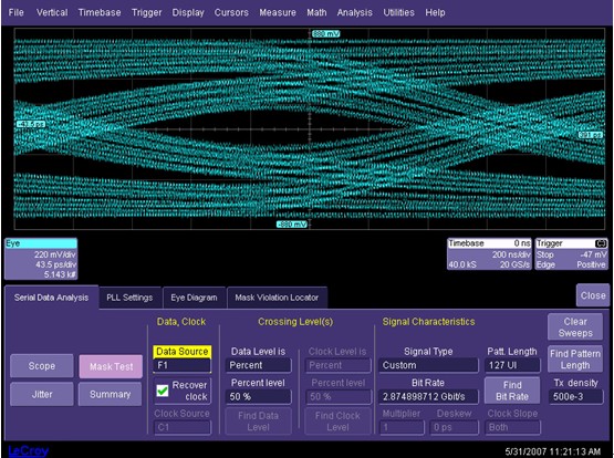 高速串行芯片往往嵌入了接收均衡器,通过示波器的均衡模拟技术复现信号,可以反映出系统的真实性能。