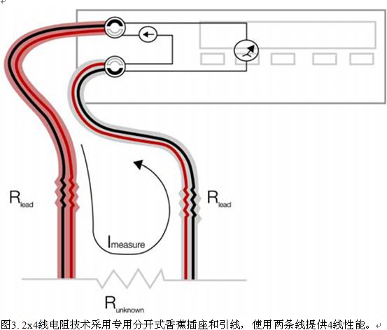 图2(右)4线电阻测量消除了电压引线中的电流,消灭了这一误差来源。