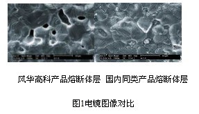 从电镜图像对比可见,风华高科产品熔断体层致密性较好,保险丝有较好的熔断特性。电子元器件行业正在朝着高频化、片式化、微型化、薄型化、低功耗、响应速率快、高分辨率、高功率、多功能、??榛椭悄芑确较蚍⒄梗胍孕滦偷缱釉骷魈宓男乱淮骷贝?。产品的安全性和绿色化也将成为影响电子元器件发展前途的重要因素。