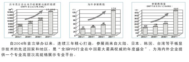 ●“光电平板显示展”将吸引知名FPD企业的高管(日立、夏普、三星、LG、友达、华映等)、通路商的高管、政府要员、技术人员等近五万人到场,同时组委会将通过国内外相关行业协会、商会组织专业士参观。
