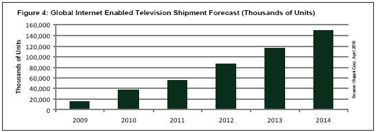 同样,随着品牌厂商努力延缓价格下跌速度和吸引消费者来更换其原有的老式平板电视,未来几年对于IETV的推广活动将会增强。iSuppli公司预测,2014年IETV市场将从2009年的1470万台增长到1.49亿台,复合年度增长率为58.9%。