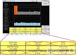 图7:误差矢量幅度(EVM)、峰值码域误差、频率误差、噪声底电平测试界面。