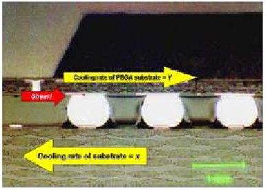 [page]在焊接大热容量和多层线路板时,光有底部红外预热是不够的。由于热容量大,底部热能很难完全传递到线路板上方,焊接时焊料在从底部向顶部渗透的过程中温度越来越低,最终焊料凝固而不能达到IPCIII标准所规定的75%以上透锡。对于无铅焊接,焊料流动性差,这样的问题就愈发突出。而顶部热风预热可以很明显地改善透锡效果。(见图10)