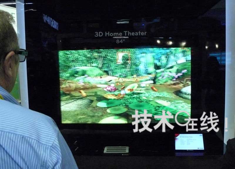 韩国LG显示器开发出了可显示三维(3D)影像的84英寸液晶面板,并在“SID 2010”展会上进行了展出。展会使用的面板像素为“4K×2K”(3840×2160)。设想用于家庭影院。