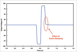 我们可以直观地理解超声波发送器输出的对称性要求。然而,这里需要深入理解的是输出信号不必为一个长脉冲群。它可能包括一个单正极和负极脉冲对,脉冲对的前后均为0V。同样,信号归至0V的质量变得至关重要。有时,它被称为“阻尼”函数(见图3),并对一些超声波模式产生巨大的影响,例如,人体非线性为主要信息源的谐波成像等。