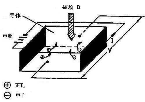 在平板半导体介质中,电子移动(有电?。┑姆较颍虼帕Φ淖饔茫ㄓ写懦。?,而改变电子行进的方向。若电场与磁场互相垂直时,其传导的载子(电子或电洞),将集中于平板的上下两边,因而形成电位差存在的现象。该电位差即霍尔电压(霍尔电压)在实际的霍尔组件中,一般使用物质中之电流载子为电子的N型半导体材料。将一定之输入施加至霍尔组件时之输出电压,利用上述之关系予以分析时,可以获致下列的结论: