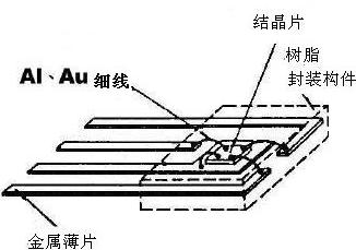 如图2-19所示,具有与树脂封闭型晶体管、集成电路等相同的构造,即多半呈现在大小5mm见方、厚3mm以下的角形或长方形板状组件上附设四根导线的构造。导线系由金属薄片所形成,各个金属薄片上均附有半导体结晶片(通常为硅芯片),而在结晶体中利用集成电路技术形成有霍尔组件及信号处理电路。为防止整个组件性能的劣化,通常利用树脂加以封闭,另外为了使磁场的施加容易起见,其厚度也尽量减薄。