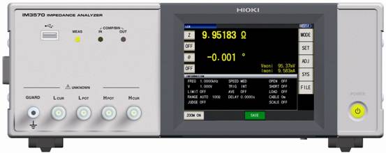 即将发售的阻抗分析仪IM3570是测量频率4Hz~5MHz,测试电平5mV~5V的LCR电桥与阻抗分析仪合二为一的仪器。因为对应不同测量条件都能高速连续测量,所以在需要使用众多仪器检查的生产线上,仅IM3570一台便可实现。