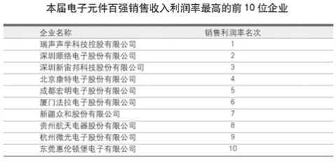 与上届元件百强利润水平大幅下滑的情况相比,本届元件百强企业的赢利情况尚能让人欣慰。本届元件百强共实现利润90.56亿元,已接近2008年(第21届)元件百强的利润总额,同比增长9.74%。这也是元件百强20多年来首次出现利润总额增幅高于销售收入增幅的情况。出现这种难得情况的原因在于,国际金融危机的爆发,一方面,迫使元件百强企业采用各种方法,比如裁员减薪等降低运营成本;另一方面,国际金融?;乖牧霞鄹翊蠓陆担泊偈蛊笠档纳杀窘徊浇档?。所以,虽然企业的整体销售收入下降较大,但对利润的影响程度稍轻,在本届元件百强中,有24家企业出现了销售收入减少,利润反增的情况。