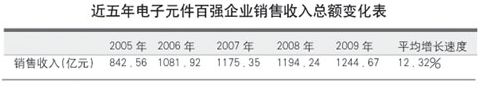 在本届元件百强当中,有33家企业2009年的销售收入超过10亿元,比上届增加3家;有6家企业超过50亿元,与上届持平。