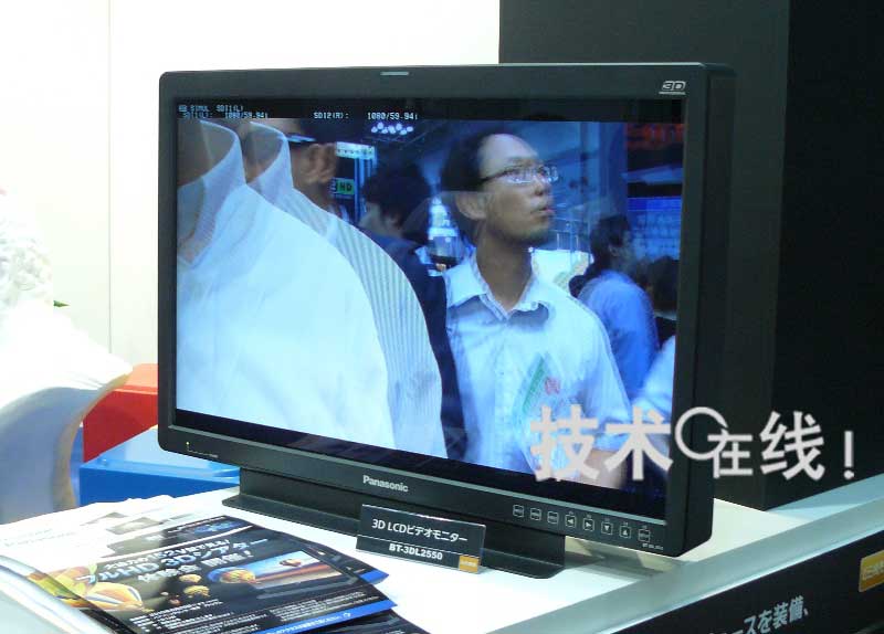 松下的3D液晶显示器画面尺寸为25.5英寸,像素为1920×1200。预定近期上市,价格为100万8000日元。支持隔行交互配置左眼及右眼用影像信号的“Line-By-Line方式”、分两条信号线发送左眼及右眼用影像信号的“Simul方式”、以及将左眼及右眼用影像信号只在水平方向压缩至1/2左右配置的“Side-By-Side方式”。预定2010年秋季上市采用120Hz驱动PDP及液晶快门配备型眼镜、支持“Frame Sequencial方式”的3D显示器。