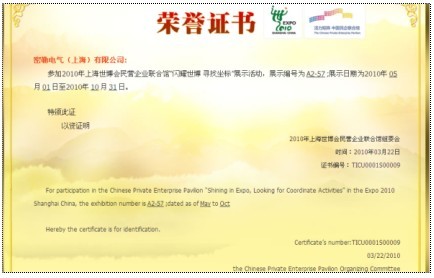 在2010世博会开幕之际,密勒电气(上海)有限公司通过世博会企业联合馆“闪耀世博 寻找坐标”官方审核,名字被刻入馆内水晶展示墙,充分体现了密勒的积累百年的实力和影响力。