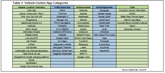 表1为iSuppli公司认定的一些以汽车为中心的智能手机应用程序。