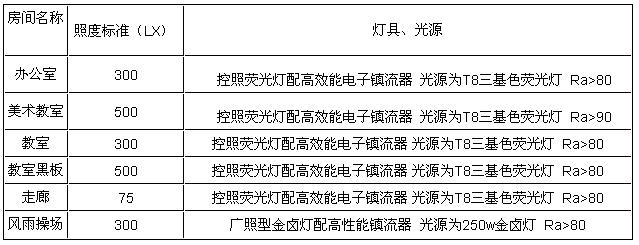 教学楼以教室、办公室为主,以荧光灯为主要照明光源。