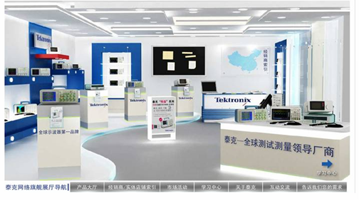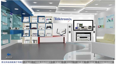 网上展厅是一种全新的以网络为依托的互动营销平台,整合了文字、图片、音频、视频和网络等技术,同时3D立体画面可让受众如身临其境,可直观地感受产品和品牌本身。泰克公司秉承“服务创新永无止境”的理念,希望借助这种新型的互动虚拟营销平台,结合遍布全国的零售实体店,通过“虚实”结合的全新营销服务模式为中国工程师带来颠覆式的绝佳采购体验,并实现泰克品牌的展示。将现实中的公司产品展示厅搬到网站上并非泰克公司首创,但在国际国内同行中无疑是第一个“吃螃蟹”的人。