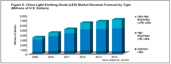 iSuppli公司的乐观预测显示,从2010到2012年,每年的LED相关投资将达到35亿美元,预示中国LED供应链将在2015年以后对全球产业构成威胁。