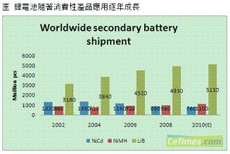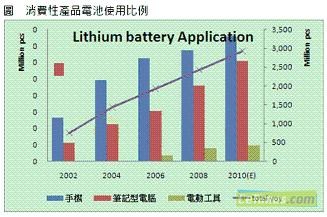 消费性产品的发展趋势迅速牵动电池产业,根据集邦科技(TrendForce)旗下研究部门EnergyTrend表示,锂电池随着量产数量增加,价格与性能也逐渐为消费者所接受,包括手机电池与NB电池,也以锂电池为使用主流,而伴随着新材料的革新,动力锂电池也成功在电动工具以及两轮车辆上展露头角,让锂电池突破仅有消费性产品的应用局限。