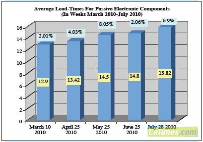 在第二季度,交货时间被拉长,我们还密切关注了原材料的价格。7月份出现了一次无征兆的跳跃,交货时间在过去30天里再一次延长了6.9%,其中钽电容器的交货时间增加最为明显,而MLCC的交付时间则缩短了,因为韩国和日本差不多在同一时间开始供货(图1.1)