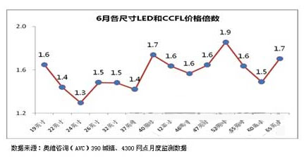 图4 6月份各尺寸LED与CCFL价格倍数关系 [page]