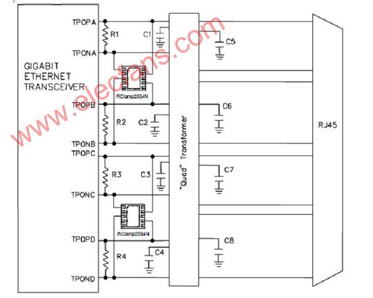 为了选择一个强大的千兆以太网应用防雷解决方案,这个方案将用于千兆以太网的RJ-45连接器里,因此,只有?;ぴ氖肯拗?,因此,Semtech公司已提供下列解决方案:
