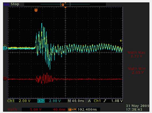 基本上,由于客户有好的连接器结构和PCB设计,当雷击发生时,它能通过结构和PCB设计释放,从这个+6KV雷击测试结果看,我们发现波形看起来像振铃,在PHY端钳位电压非常低,这说明大部分雷击能量已被释放,这时能很好的?;HY芯片。